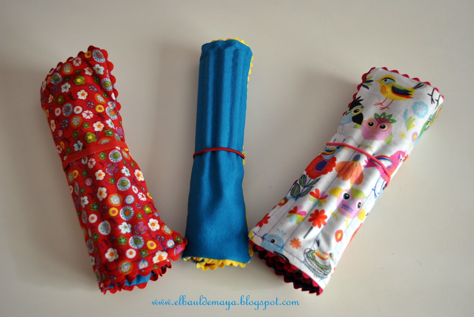 Para guardar tus pinturas de palo, o tus rotuladores, o tus pinturas de cera, o tus bolis de colores.... y tenerlos todos ordenaditos y encontrar rápidamente un color cuando lo necesites, aquí están los ROLLESTUCHES.